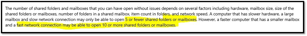 לאחר שמגיעים למספר התיקיות הזה מתקבלת הודעת שגיאה כי ישנה חריגה ממספר התיקיות המרבי, גם אם מספר התיקיות לא 500 אלא 450 או משהו כזה – אז עבודה "על הקצה" תגרור איטיות כלשהי, ניתן לתת הרשאה לתיקיות ספציפיות, אין צורך לתת הרשאה לכל ה- Mailbox עם תיקיות מיותרות כמו Notes, Task ושאר ירקות.