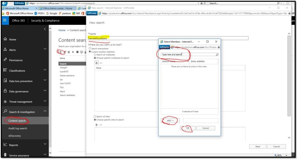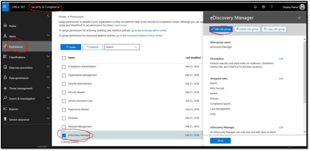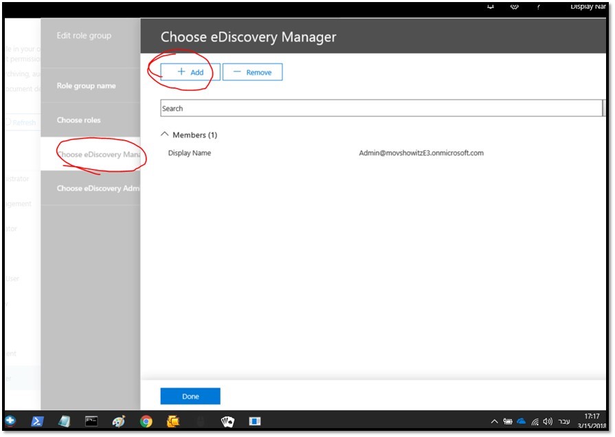 שם להיכנס ל- Permissions ולהוסיף את חשבון ה- Global Admin ל- eDiscovery Managers :