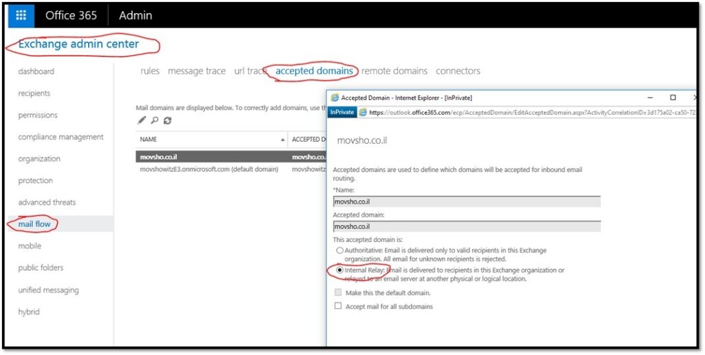 בנוסף, יש להגדיר את ה- Accepted Domain ל- internal relay :