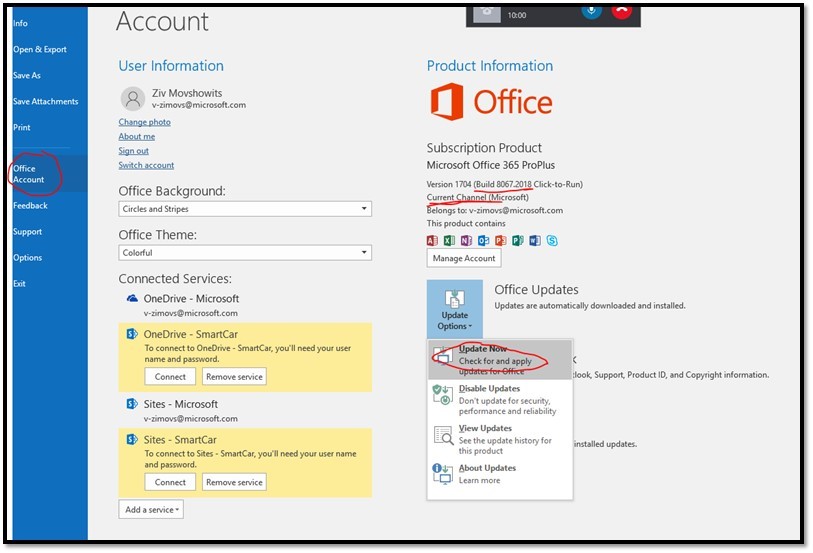 דבר ראשון – לוודא כי ה- Office הוא Up to date ושהוא Office של 365 ולא Standard או Home & Business וכו'.