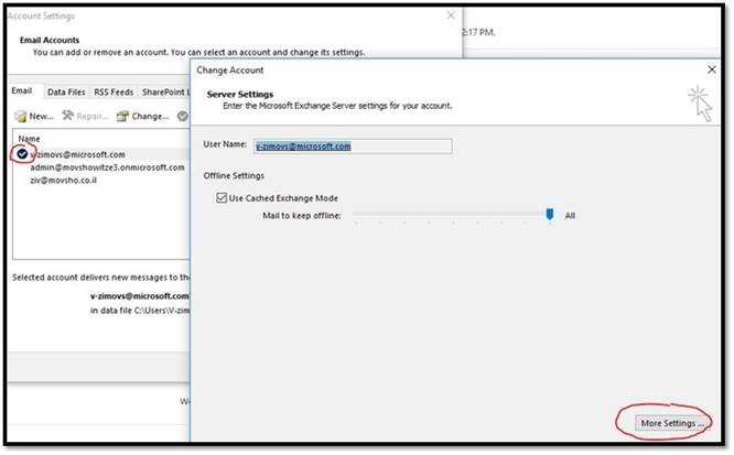 במידה ואתה מקבל תשובה תקינה – אנא הגדר את הפרופיל לא מה- Control Panel אלא מה- Outlook עצמו, באופן זה: