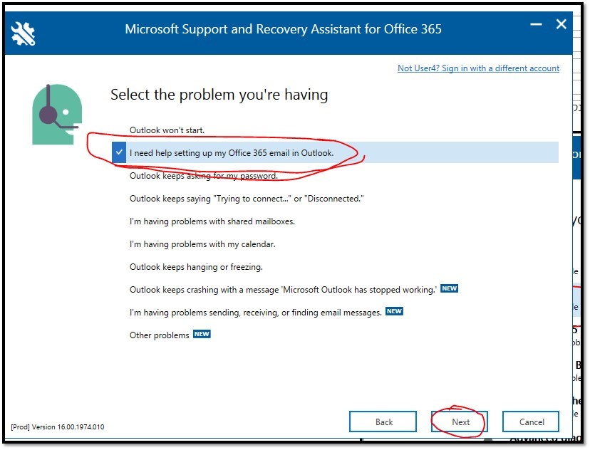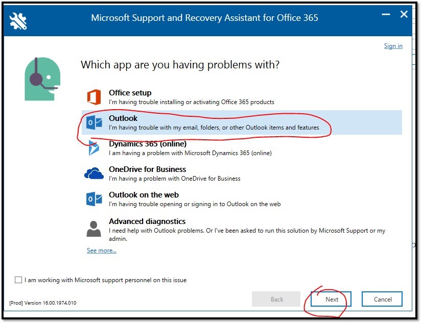 במידה והצליח – מעולה, במידה ולא – נסה להגדיר את הפרופיל באמצעות SaRa – לינק להורדה : https://diagnostics.outlook.com/#/