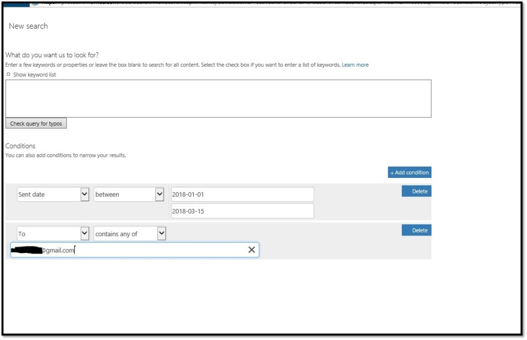 יש שם אפשריות של תאריכים, נשלח אל (TO) ועוד כל מיני, מצרף לך דוגמא לשאילתה שעשיתי לגבי תיבת User3 למיילים שנשלחו בין ינואר למרץ אל כתובת Gmail: